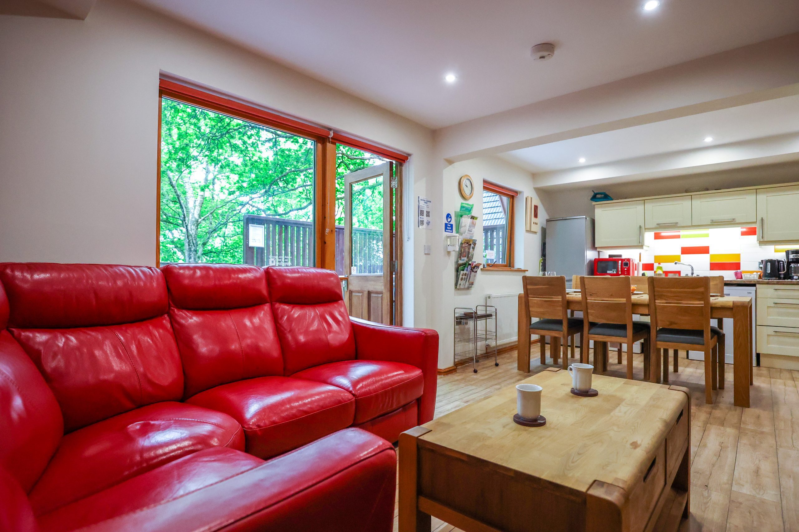 Lodge Nine offers a large decking with beautiful woodland views. It’s great for bird-watching, having afternoon tea, or dining outdoors. The 6-seater hot tub is perfect for relaxing and stargazing. The decking also attracts local wildlife, with birds and squirrels often stopping by. Whether you want to relax or enjoy nature, this spot is ideal.